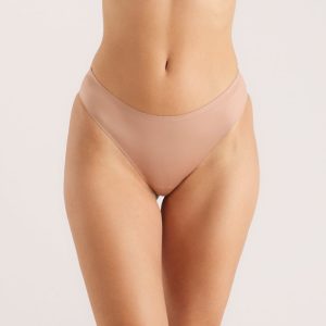 Lightweight buttery soft stretch microfibre Lounge banner with minimal branding Sewn-in gusset 65% Recycled Polyamide, 35% Elastane It’s time to find your calm in our Sleek Mindful Thong. Delicately designed using a buttery soft fabrication, sewn-in gusset and bound-edge details for all round comfort, this figure-huggi