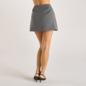 Structured Skirt – Grey Pinstripe