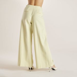 Thin waistband Horn button fastening with logo engraving Invisible zip fastening to front Inner button to front for extra security Belt loops 2 side pockets Double-darted front into pleats Wide-leg design Jacquard-branded inside lining 2 pocket welts to back