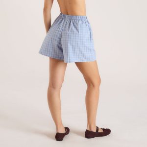 Checked Cotton Shorts – Blue