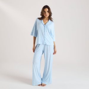 Ultra-soft Pajama shirt made of smooth modal fabric Drop-shoulder design for a relaxed look Soft-stretch fabrication with hand-drawn print Buttons engraved with Lounge logo Relaxed-fit cuffs for a comfortable, unrestricted fit Centre-back seam with small slit to bottom edge Front pocket to chest Woven tab with Lounge l