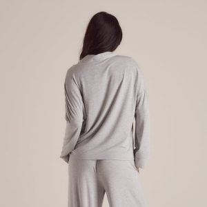 Ultra-soft pajama shirt made of smooth modal fabric Soft-stretch fabrication Buttons engraved with Lounge logo Piping detail to cuffs, collar, and front seam Front pocket to chest Woven tab with Lounge logo to front pocket
