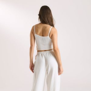 Soft pointelle fabrication – 205 GSM Ruching detail to centre-front for added shape Woven label with Lounge logo to side Rosebud detail to centre-front Lace trim to neckline