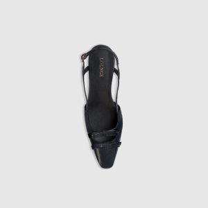 Kitten heel Soft pointed toe Double bow to front with cut-out detail Stitching detail to bows Gold 'L' metal pin to undersole Buckle detail with miniature hanging 'L' charm Engraved Lounge logo to sole Foil Lounge logo to insock Elasticated slingback for added security Full leather upper and internals Super-soft premiu