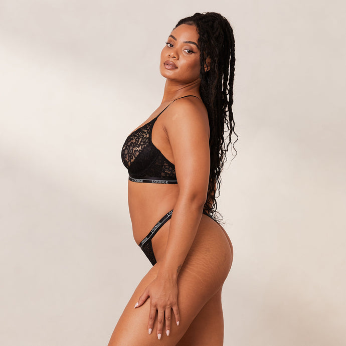 Underwired bra Soft stretch floral lace Hook and eye fastening Adjustable Lounge embossed straps Silver Lounge engraved hardware Lounge branded banners 88% Polyamide, 12% Spandex Our Balcony Collection is designed to offer you a supportive underwired fit with added luxury. Embrace all the pretty details in this Female