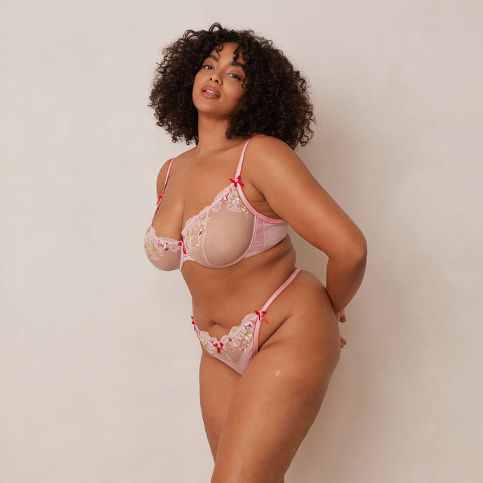 Bloom Embroidered Balcony Bra & G-string/Briefs Set – Pink