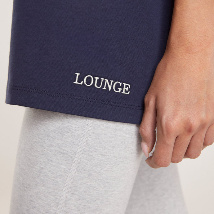 Relaxed oversized style Soft-stretch cotton fabrication Ribbed neckline Dropped-shoulder style Embroidered Lounge logo