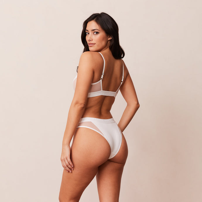 Contour Mesh Bra & Thong/Briefs Set – White