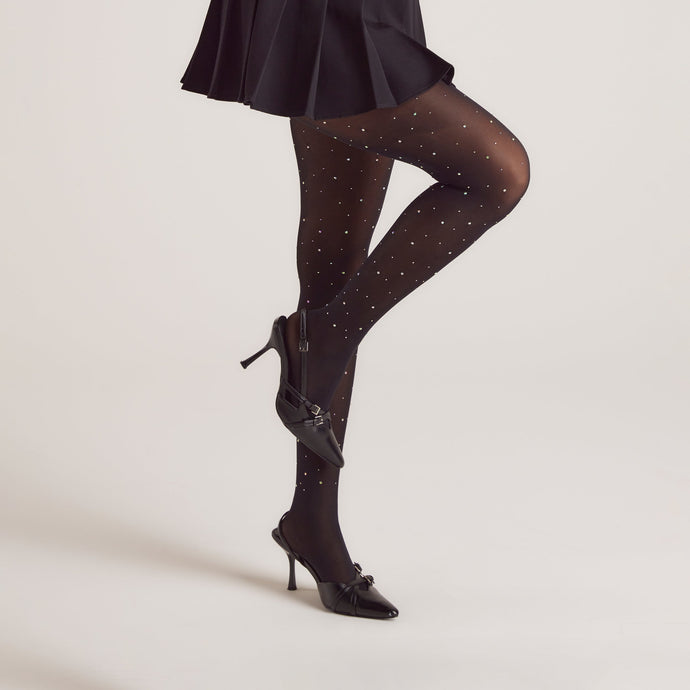 40-denier high-waisted tights Wide, supportive waistband Subtle repeated diamanté pattern
