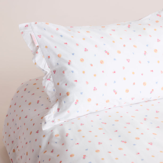 Frill Edge Pillowcase (2-Pack) – White Fruits