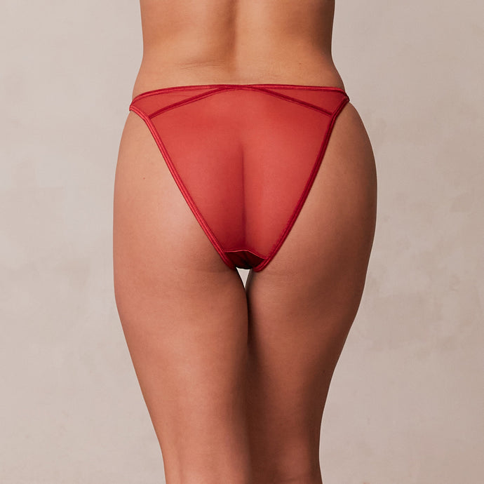 Soft stretch mesh with an embroidered illustration Criss-cross and scalloped edge detailing Silver Lounge engraved rings 65% Polyamide, 28% Polyester, 7% Elastane Beautifully designed with our unique customised embroidery of our Female Family, flattering satin binding and scalloped edge detailing, you’ll be mesmerised