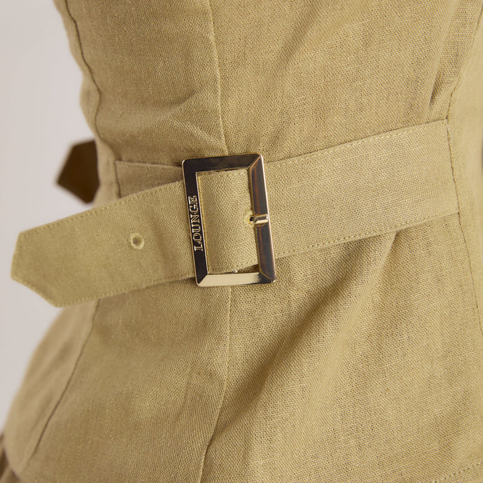 Linen-blend maxi skirt Flat waistband Gold 'L' logo branding to left side Invisible zip fastening to side 2 side pockets Gathered waist for a fuller skirt shape