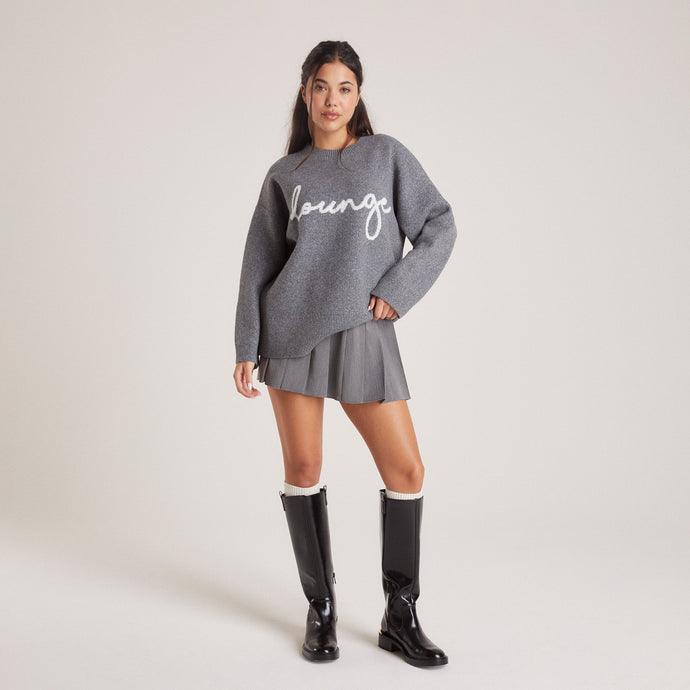 Oversized crew-neck jumper Ribbed detailing to neck, hem, and cuffs Jacquard knit Bouclé stitched handwritten logo to centre-front in contrasting colour