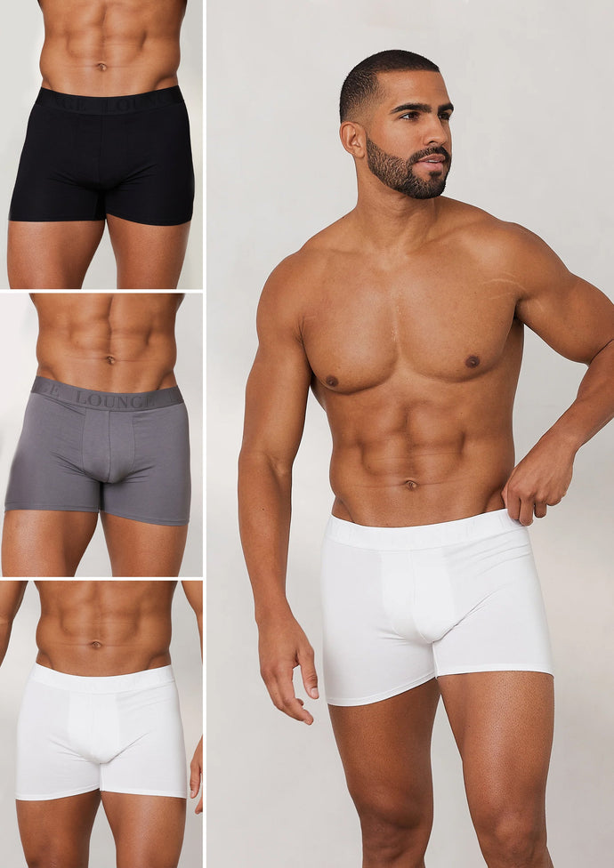 Upgrade your underwear game with these ultra-comfortable Luxe Boxers. With a thick, soft waistband and breathable bamboo fabrication, these boxers will become a staple in your drawers. 3-pack of Boxers Soft stretchy Bamboo fabrication Mid-thigh comfortable fit Lounge branded banner 93% Bamboo, 7% Elastane