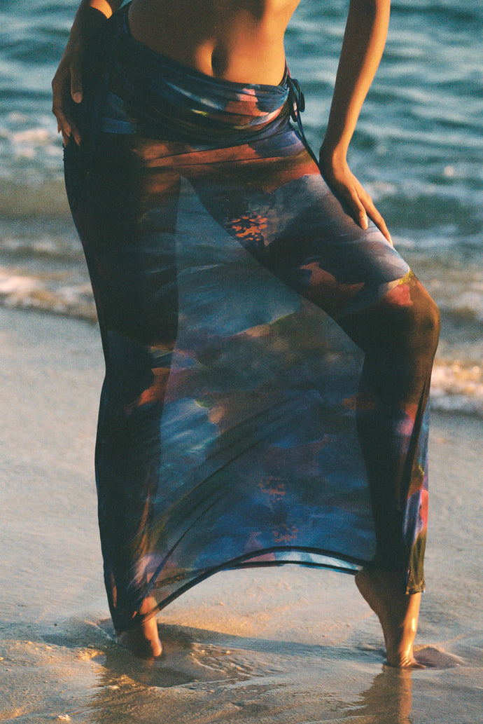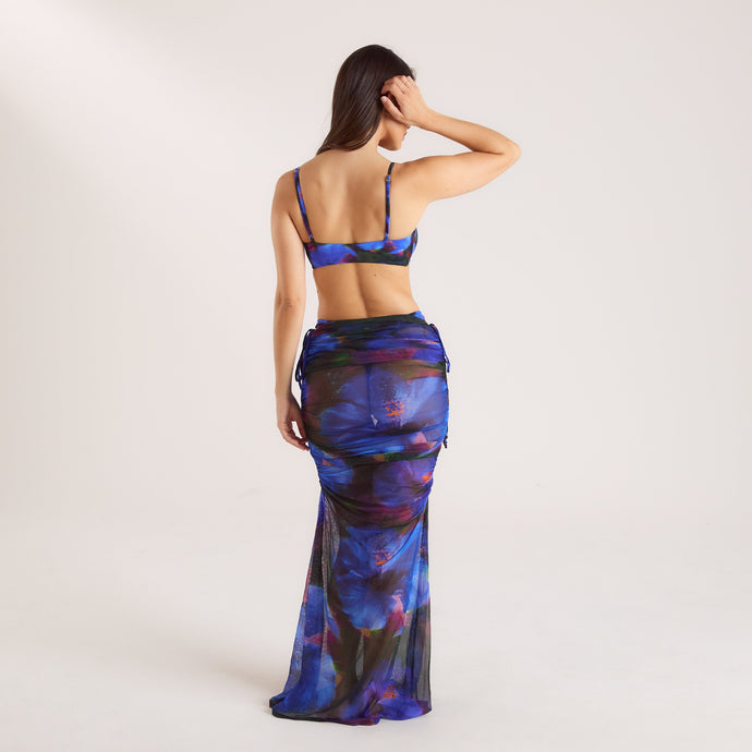 Midnight Tropics Printed Mesh Maxi Skirt – Midnight Blue