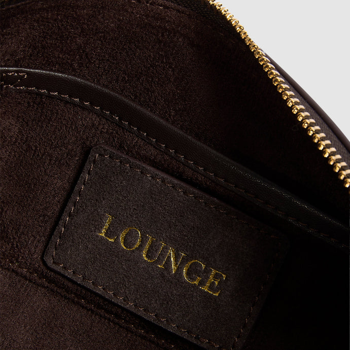 Full suede barrel bag Structured shape PU Shoulder straps with knotted effect Buttery-soft textile internal Internal pocket with branded tab Classic zip pull with embossed 'L' lettermark Raised metal logo lettering Branded hammered metal aglets Protective cotton dust bag included