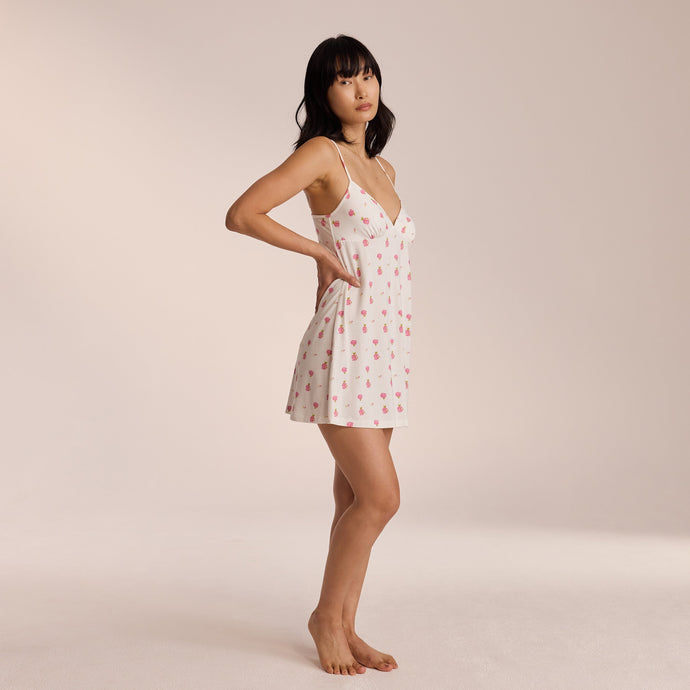 Modal nightdress with strappy sleeves Lined cups for a non-sheer look Gathered cups for a flattering fit Scoop-back design Adjustable straps to shoulders and back