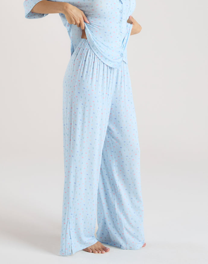 Smooth modal fabrication Wide-leg design Soft-stretch fabrication with hand-drawn print Elasticated waist Small slit to each side Woven tab with Lounge logo to side
