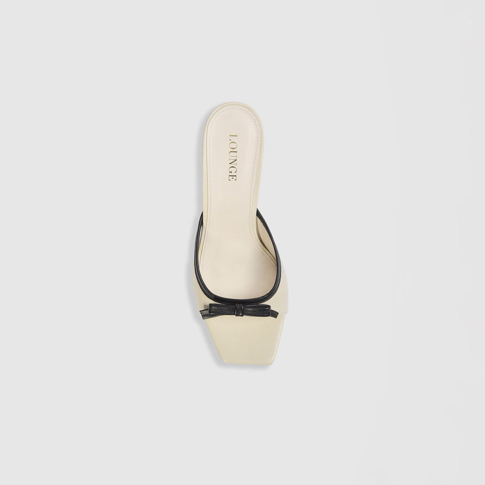 Contemporary soft square toe shape Open-toe design Bow detail Foil Lounge logo to insock Engraved Lounge logo to sole Gold 'L' metal pin to undersole Leather and textile gingham upper Leather binding Wooden kitten heel Super-soft premium tunit sole Peached sole Subtle padded insock Anti-slip texture to sole Heel height