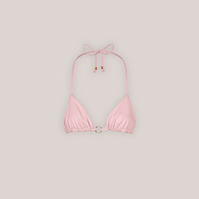 Ruched triangle style, no padding Printed floral fabrication Reversible style Adjustable straps Gold Lounge engraved hardware Tie fastening details 78% Recycled Polyamide, 22% Elastane Switch up your summer with this fully reversible triangle bikini top. Adjustable, comfortable, supportive, sexy – you won't need to pac