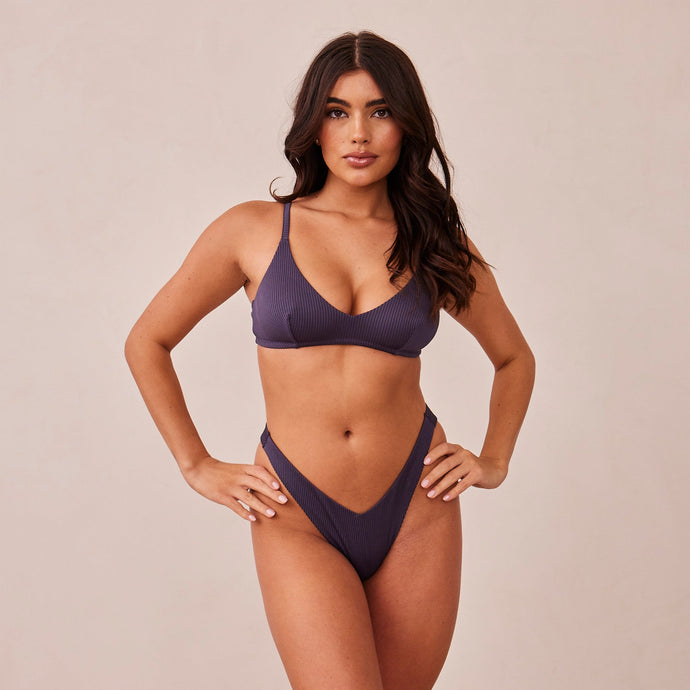 Ribbed Triangle Bra & Thong/Briefs Set – Charcoal Blue
