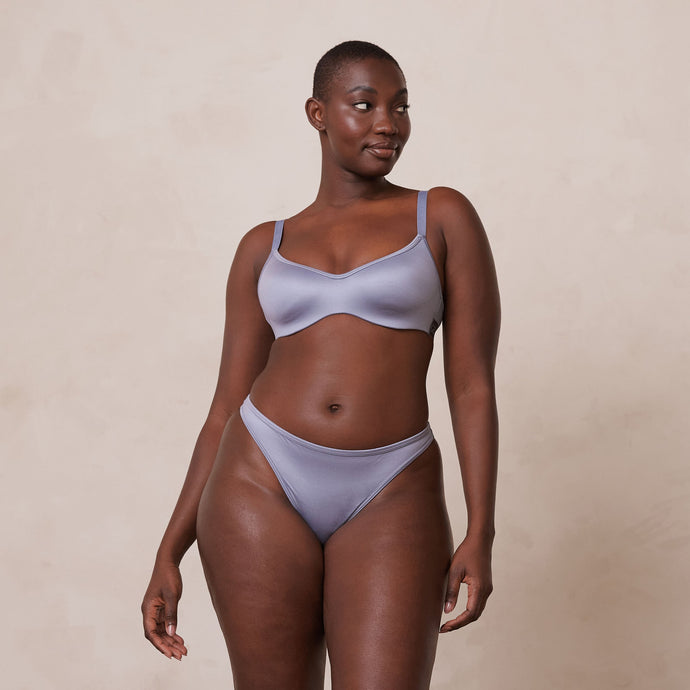 Sleek Mindful Bra & Thong/Briefs Set – Smoked Blue