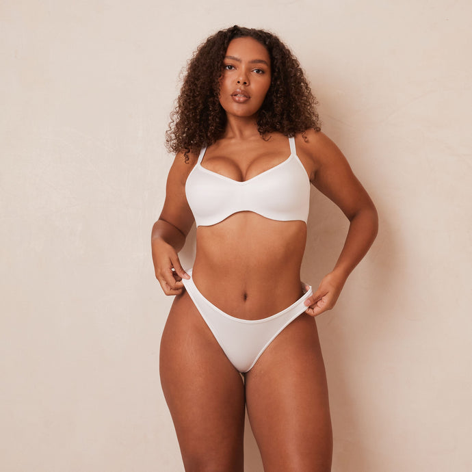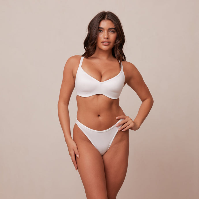 Sleek Mindful Bra & Thong/Briefs Set – White