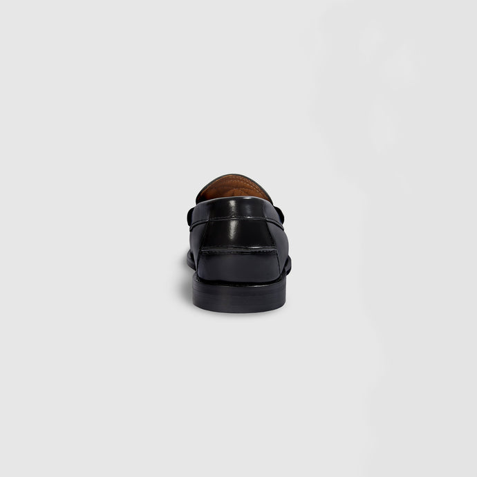Classic moccasin construction Structured fit Classic moccasin saddle Glossy box leather Logo engraving to sole Foil Lounge logo to insock Miniature 'L' pin to saddle Full leather upper Full leather internals Quilting detail across vamp Stitching detail to sole and base of sole Anti-slip texture