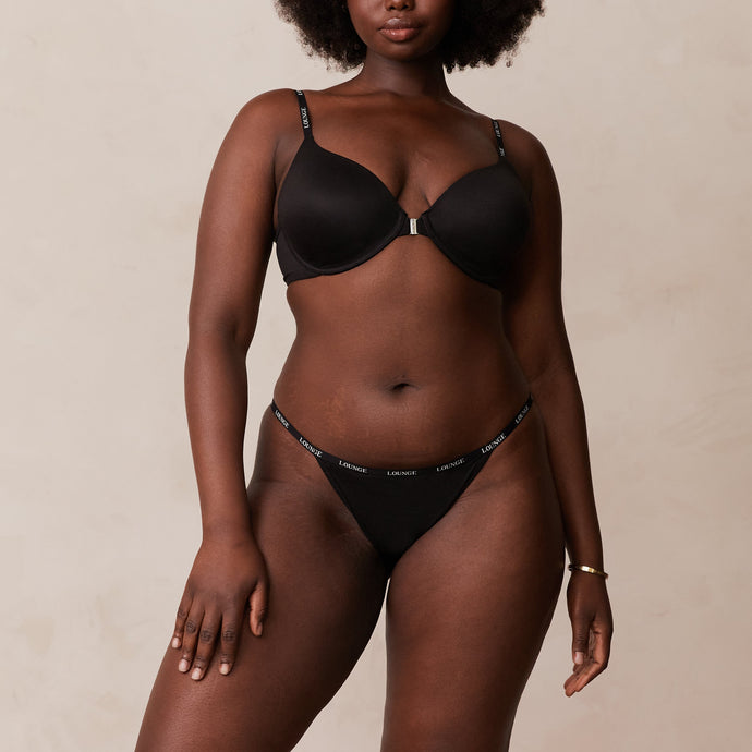 Underwired bra with foam cups Smooth brushed fabrication Lounge branded straps to bra and waist Silver front fastening clasp with debossed Lounge Silver Lounge hardware 80% Recycled Nylon, 20% Elastane Our Smooth Front Fastening T-Shirt Bra Set is designed to bring comfort into your everyday. Featuring a silver front f