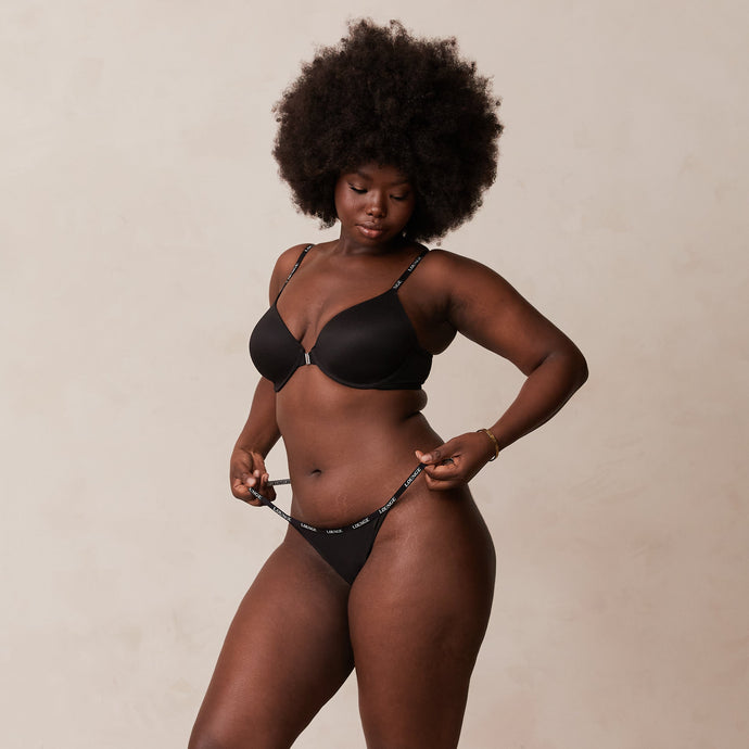 Smooth Front Fastening T-shirt Bra & Thong/Briefs Set – Black