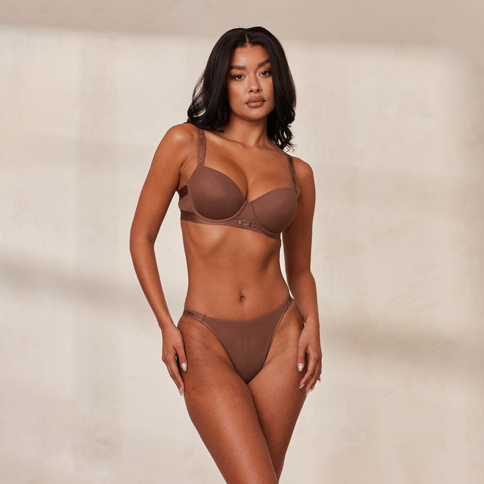 Smooth Mesh T-shirt Bra & Thong/Briefs Set – Chestnut