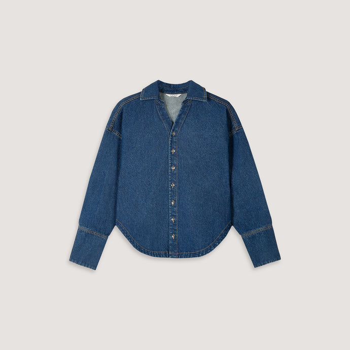 Wide-leg denim shorts with structured flare Wide hem detail 2 pockets to side 2 pockets to back Belt loops Contrast brown stitching Over-seam details to front and back Contrast-colour woven patch with embroidered logo Fly fastening with logo-branded button