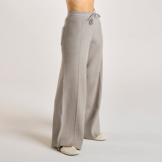 Ultra-wide-leg knitted trousers with drawstring waist Intricate knit details to waistband Knitted drawstring cords 2 pockets to back with hidden embroidered logo branding Elasticated waist Stitch detail to give a tucked effect